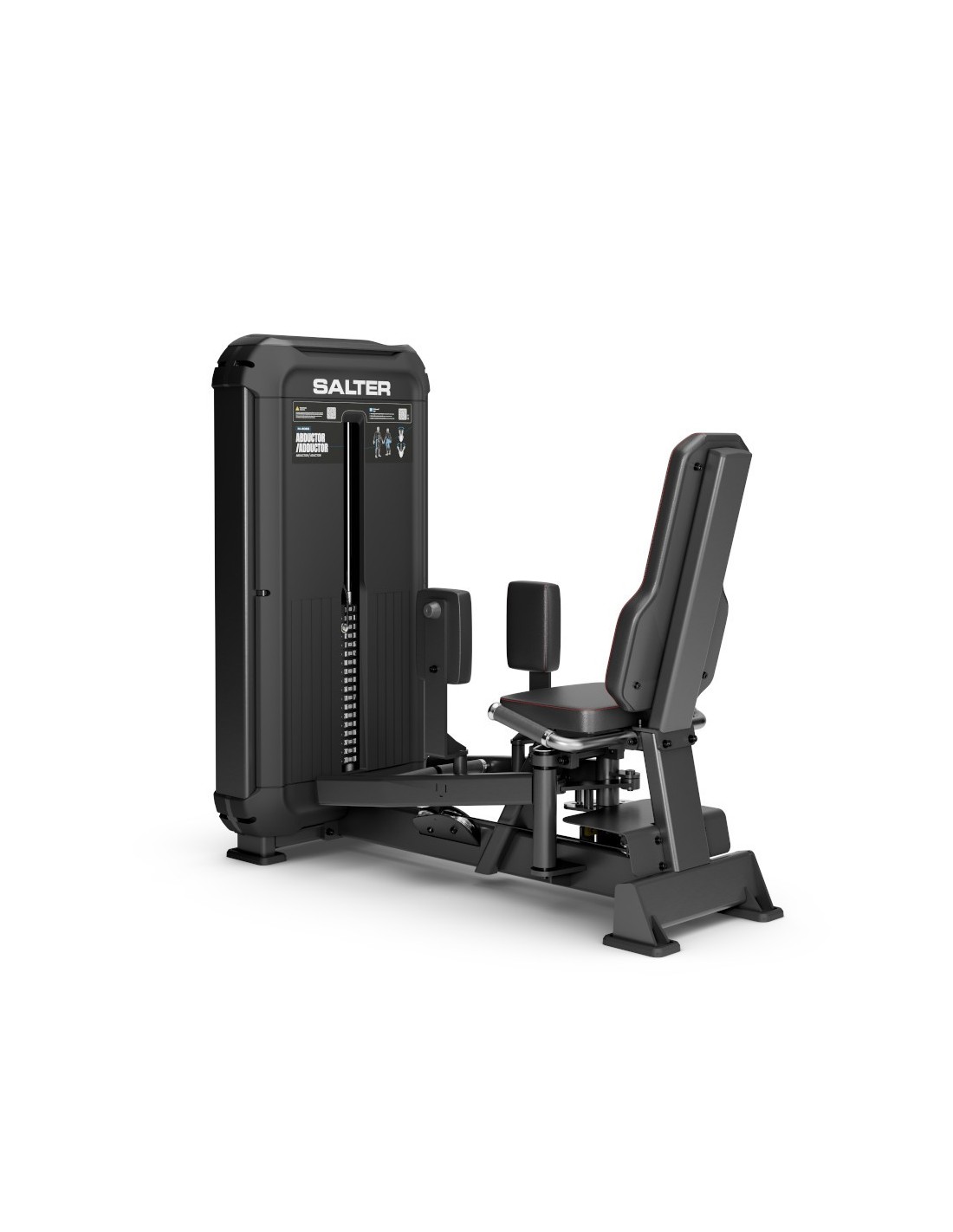 It is equipped with an anatomical seat and leg supports, ensuring proper alignment and comfortable execution during both abduction and adduction exercises. The antibacterial upholstery complies with MRSA and SANITIZED standards, is fire-resistant according to M2 / UNE 1021 regulations and is free from solvents and harmful substances in compliance with OEKO-TEX. The intense red stitching reinforces its professional character. The non-porous, anti-slip rubber-injected grips ensure safe and ergonomic use.
