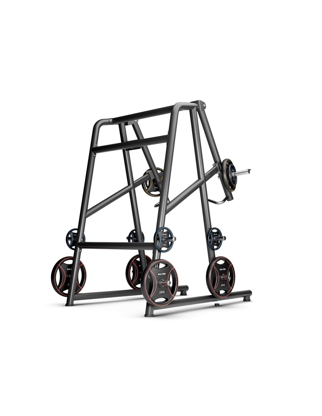 Allows you to store the load on the machine itself, keeping plates within easy reach and the workout area tidy and safe. It enables quick weight changes between sets and avoids unnecessary trips around the gym