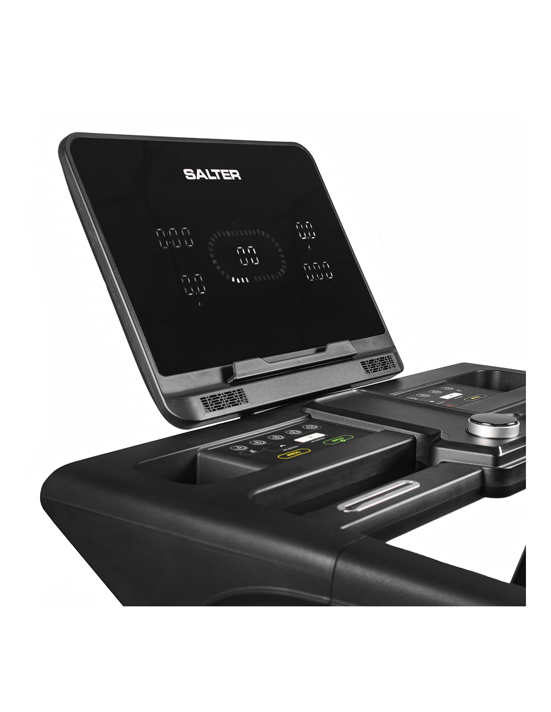 El monitor LED de gran formato proporciona información completa: tiempo, velocidad, distancia, inclinación, calorías y pulso, y la pantalla incluye modo ahorro de energía. Compatible con la plataforma KINOMAP, permite sincronizar los entrenamientos vía su tecnología Smart Training para una experiencia virtual inmersiva y adaptativa (ajuste automático de inclinación).
