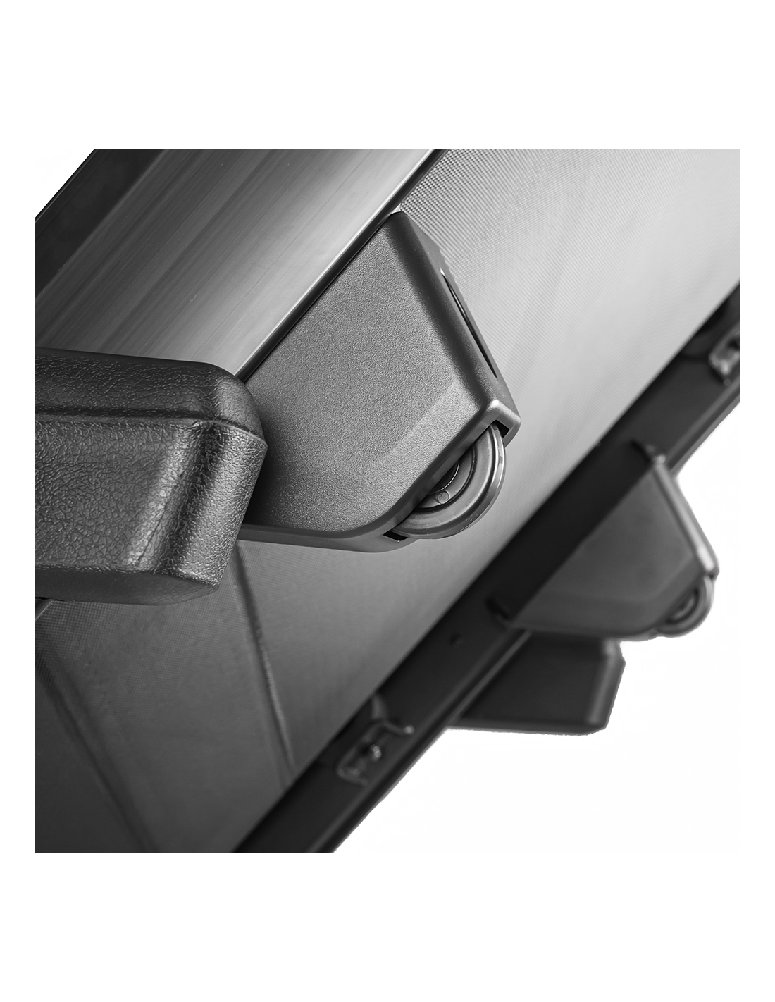 Su sistema de control central permite modificar fácilmente la velocidad e inclinación desde el panel o los agarres laterales, con teclas de acceso rápido integradas. El sistema de medición del pulso inalámbrico (5kHz, compatible con cinturón, no incluido) permite un control eficiente del ritmo cardíaco, incluso en sesiones intensas.