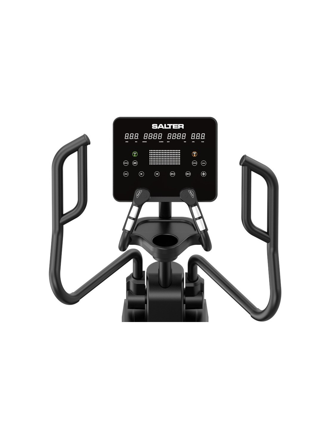 Ofrece programas preestablecidos y 32 niveles de resistencia, permitiendo adaptar el entrenamiento a todo tipo de usuarios. Dispone de doble sistema de captación del pulso, mediante sensores de contacto integrados y sistema inalámbrico compatible con cinturón pectoral (no incluido).