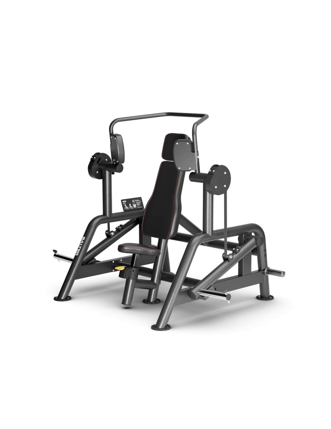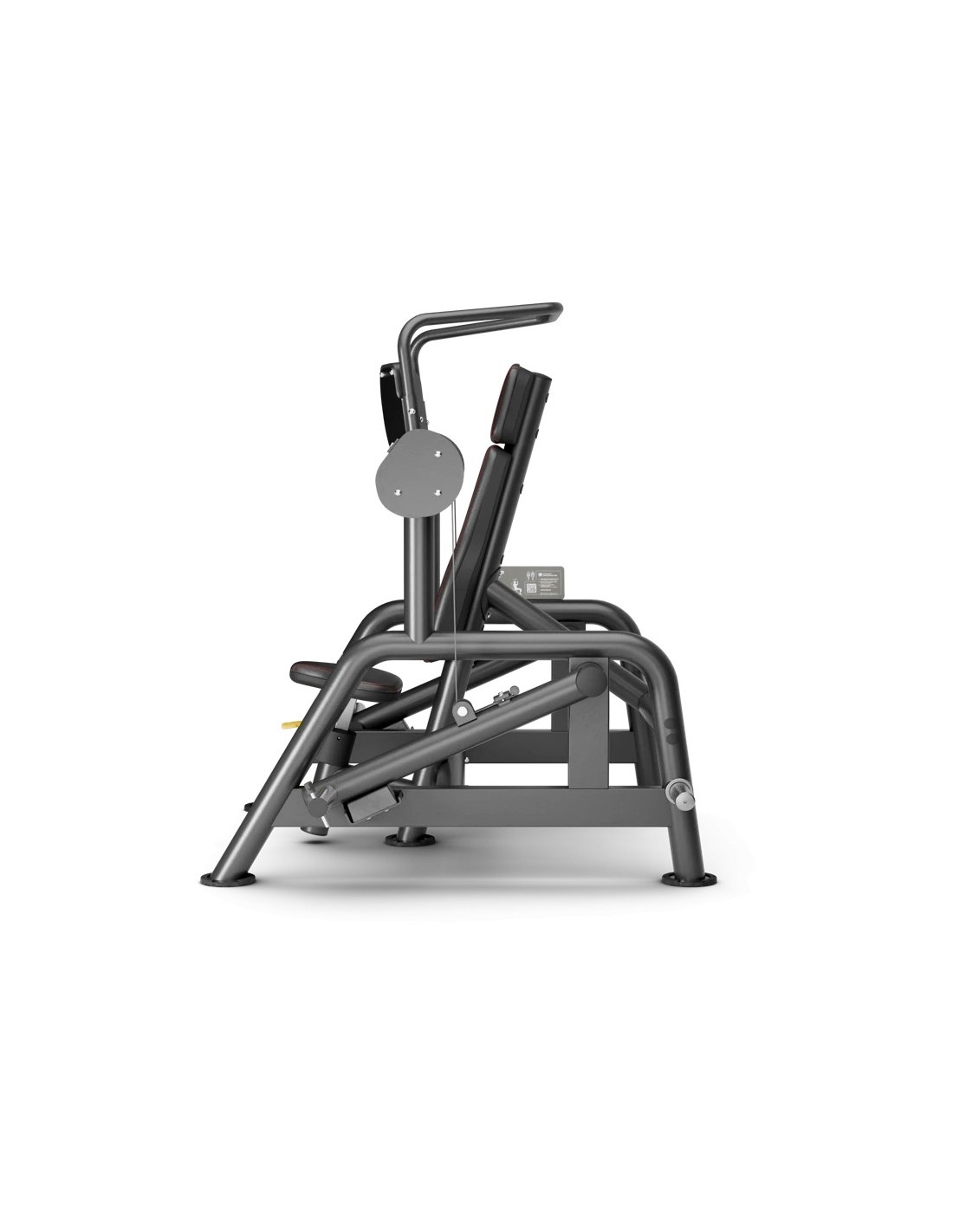 El asiento anatómico ajustable en altura permite adaptar la máquina a la fisionomía de cada usuario en segundos, favoreciendo una alineación y un recorrido de trabajo más eficiente