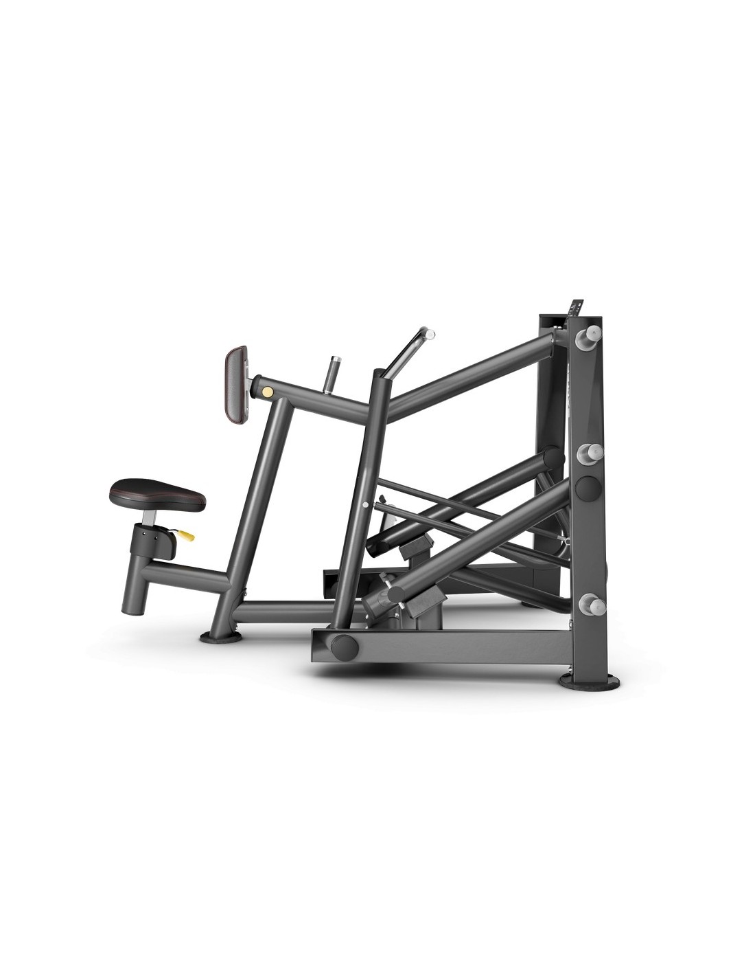 El asiento anatómico ajustable en altura permite adaptar la máquina a la fisionomía de cada usuario en segundos, favoreciendo una alineación y un recorrido de trabajo más eficiente