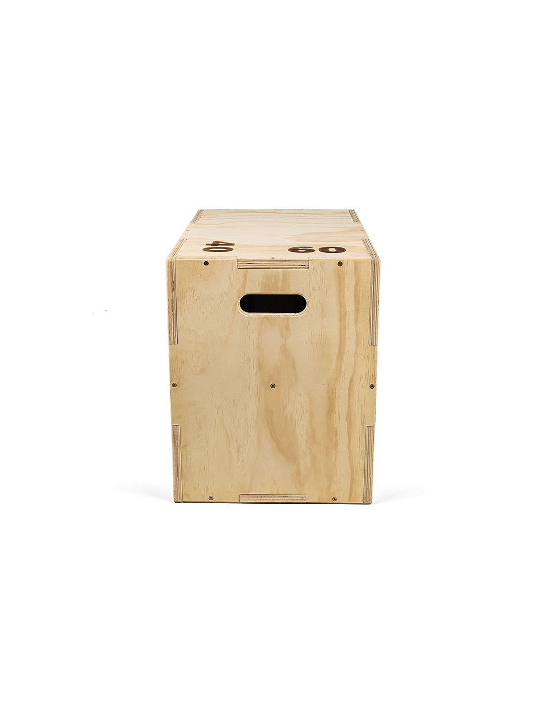 Su diseño permite utilizar el cajón en tres alturas distintas (40, 50 y 60 cm) simplemente girando la caja, lo que lo convierte en una herramienta versátil para diferentes niveles de dificultad y tipos de ejercicio. Cada lado muestra la altura impresa, facilitando una identificación visual rápida.