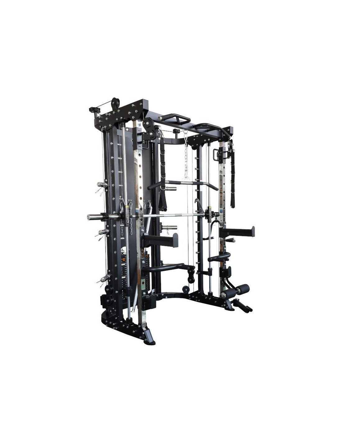 Máquina multifunción que permite trabajar la musculatura de todo el cuerpo. Ideal para el entreno de la fuerza. Permite realizar más de 35 ejercicios distintos. Sus altas prestaciones, su facilidad de uso y robustez la convierten en un elemento indispensable para un entrenamiento de calidad, tanto en casa como en comunidades de propietarios, hoteles y pequeños centros de fitness.