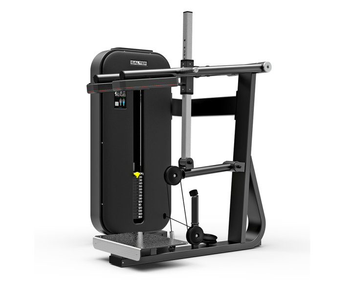 La máquina M-2019 está diseñada para el entrenamiento de fuerza de miembros inferiores, combinando de forma eficaz los ejercicios de sentadillas y gemelo de pie. Su estructura robusta y ergonómica permite realizar un movimiento guiado seguro, potente y preciso. Pertenece a la línea profesional ESSENCE de SALTER, pensada para instalaciones donde la durabilidad, higiene y biomecánica son prioritarias.