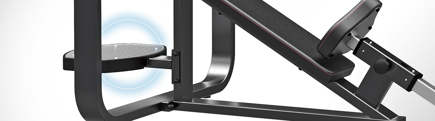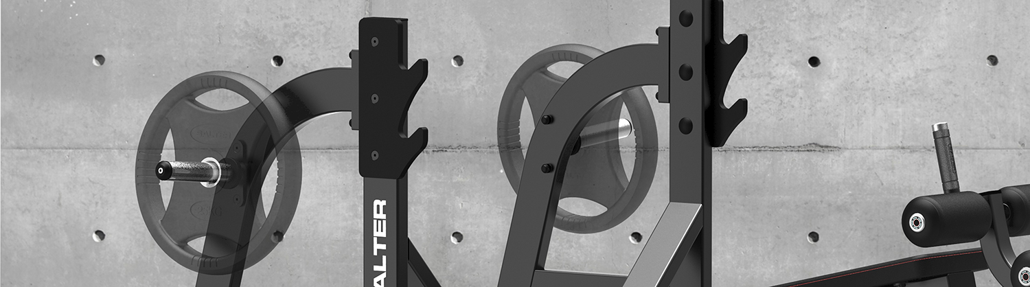 Fabricado con estructura de acero reforzado de 3 mm, cuenta con soporte para barra a dos alturas construido en compacto fenólico monoblock negro, garantizando resistencia a la fricción y al uso intensivo. La plataforma de ayuda antideslizante y los niveladores regulables en la base aseguran estabilidad total durante el ejercicio, tanto para el usuario como para el asistente.