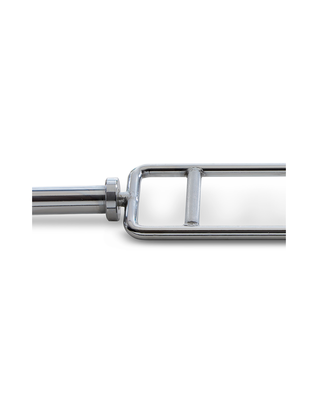 Fabricada en acero resistente, es compatible con discos olímpicos de 50 mm y está diseñada para soportar entrenamientos intensivos en entornos profesionales. Su tamaño compacto y diseño cerrado la convierten en una opción segura y manejable para entrenamientos de fuerza orientados al tren superior.