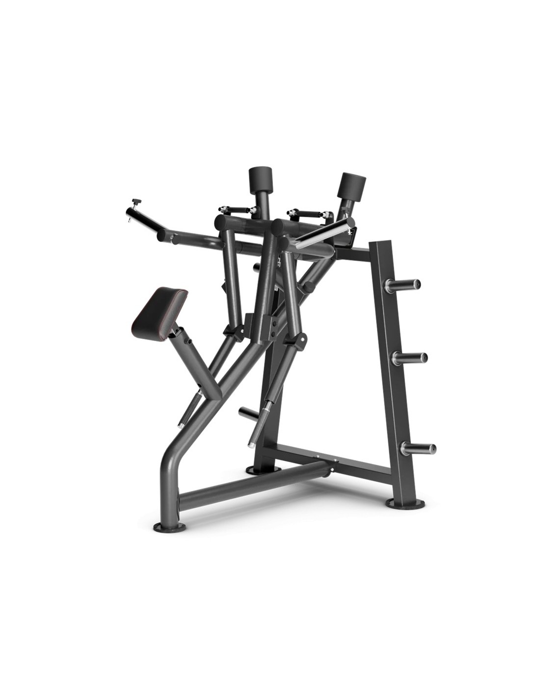Permet de stocker la charge directement sur la machine, en gardant les disques à portée de main et l’espace d’entraînement ordonné et sécurisé. Facilite des changements de poids rapides entre les séries et évite les déplacements inutiles dans la salle.