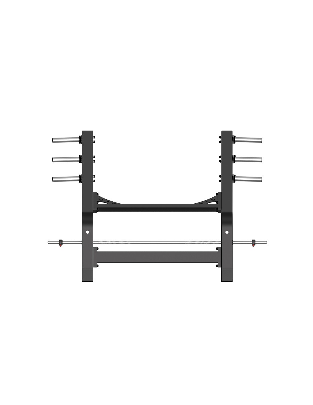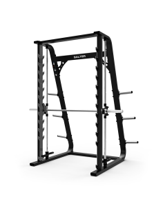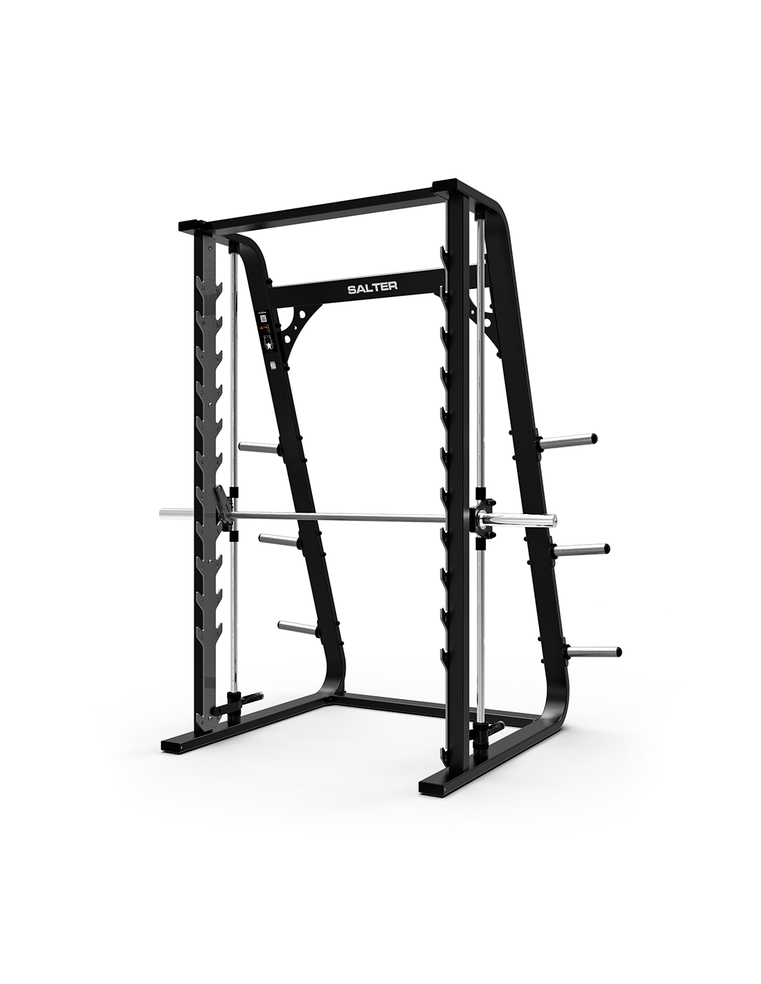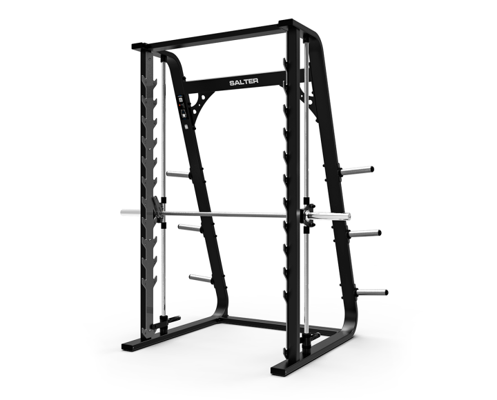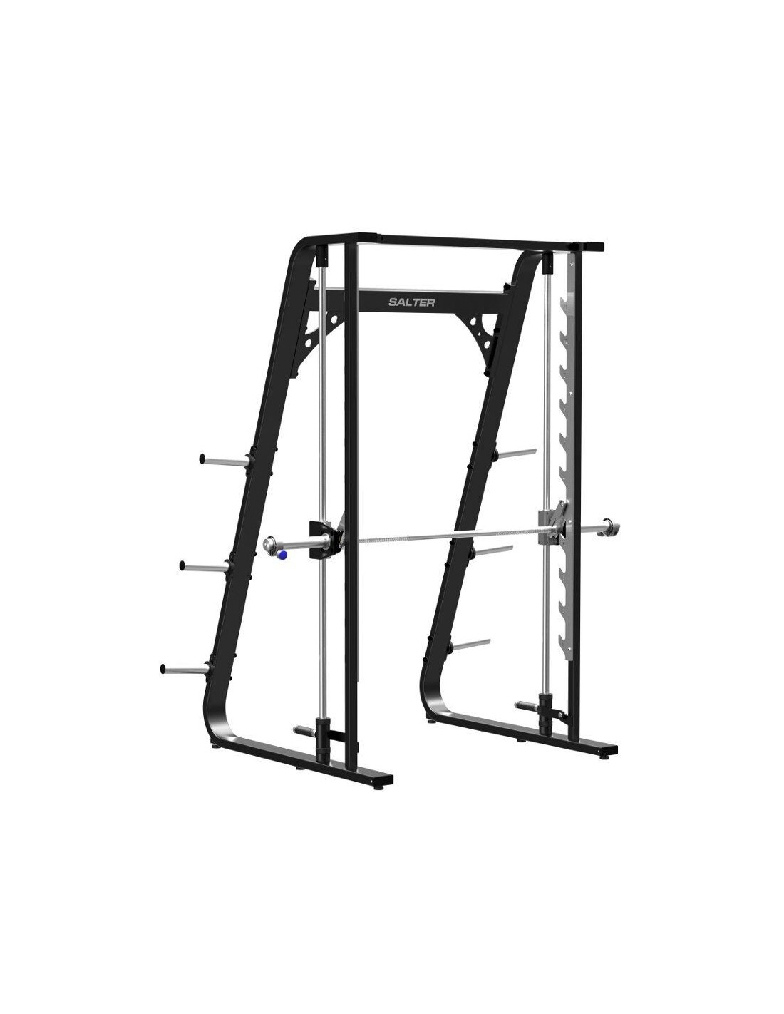 Elle dispose d’une barre avec verrouillage de sécurité, de butées de course, de supports latéraux pour disques Ø50 mm et de patins de mise à niveau réglables. Idéale pour les squats, développés couchés ou épaules avec charge guidée.