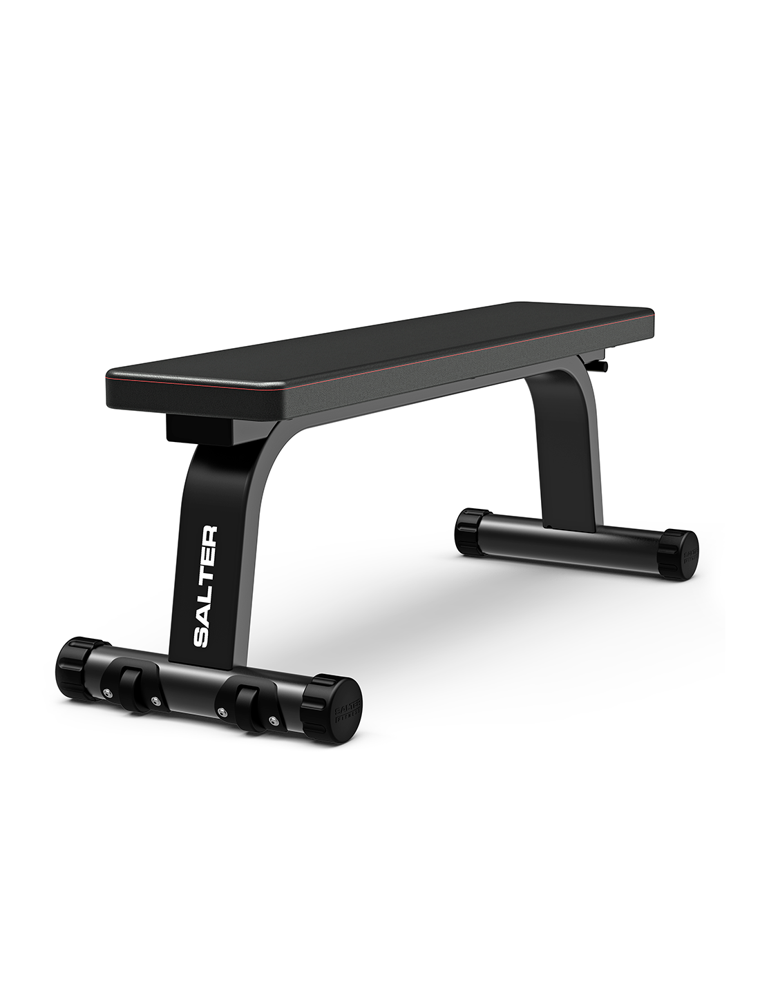 Banc plat compact et robuste, avec roulettes de transport et un design minimaliste. Idéal pour le travail avec haltères ou comme base pour l'entraînement fonctionnel.