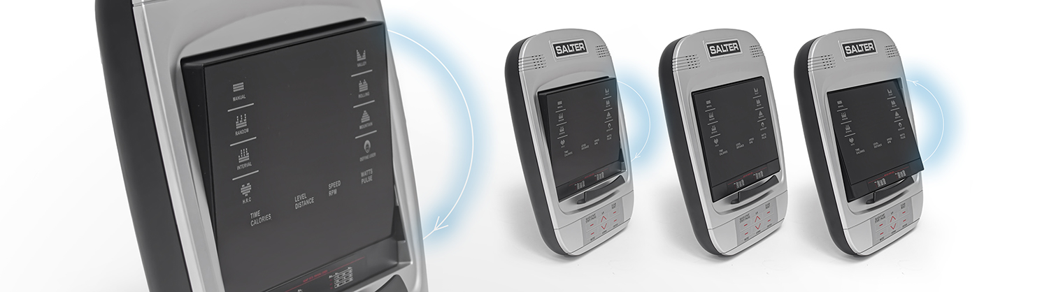 Le grand écran LED orientable permet une lecture claire et immédiate des données clés : Temps, Distance, RPM, Vitesse, Niveau de résistance, Calories, Fréquence cardiaque et Puissance (Watts).