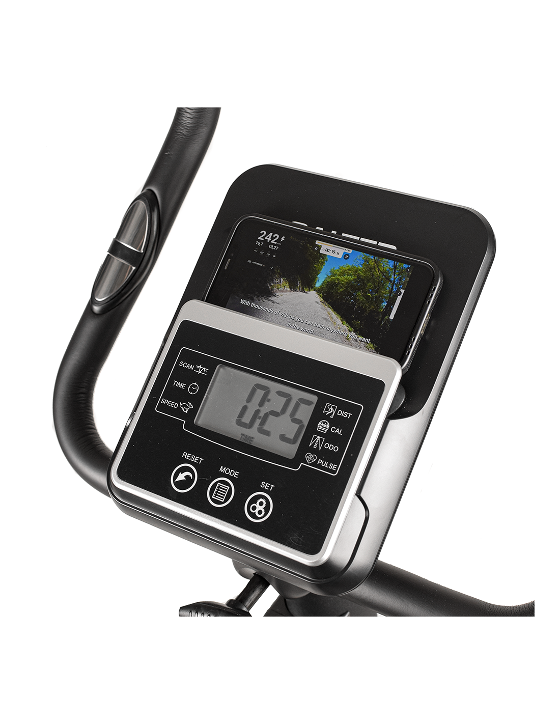 - Panneau de contrôle avec affichage du Temps, de la Distance, de la Vitesse, des Calories, de l’ODO, du Pouls et fonction SCAN.