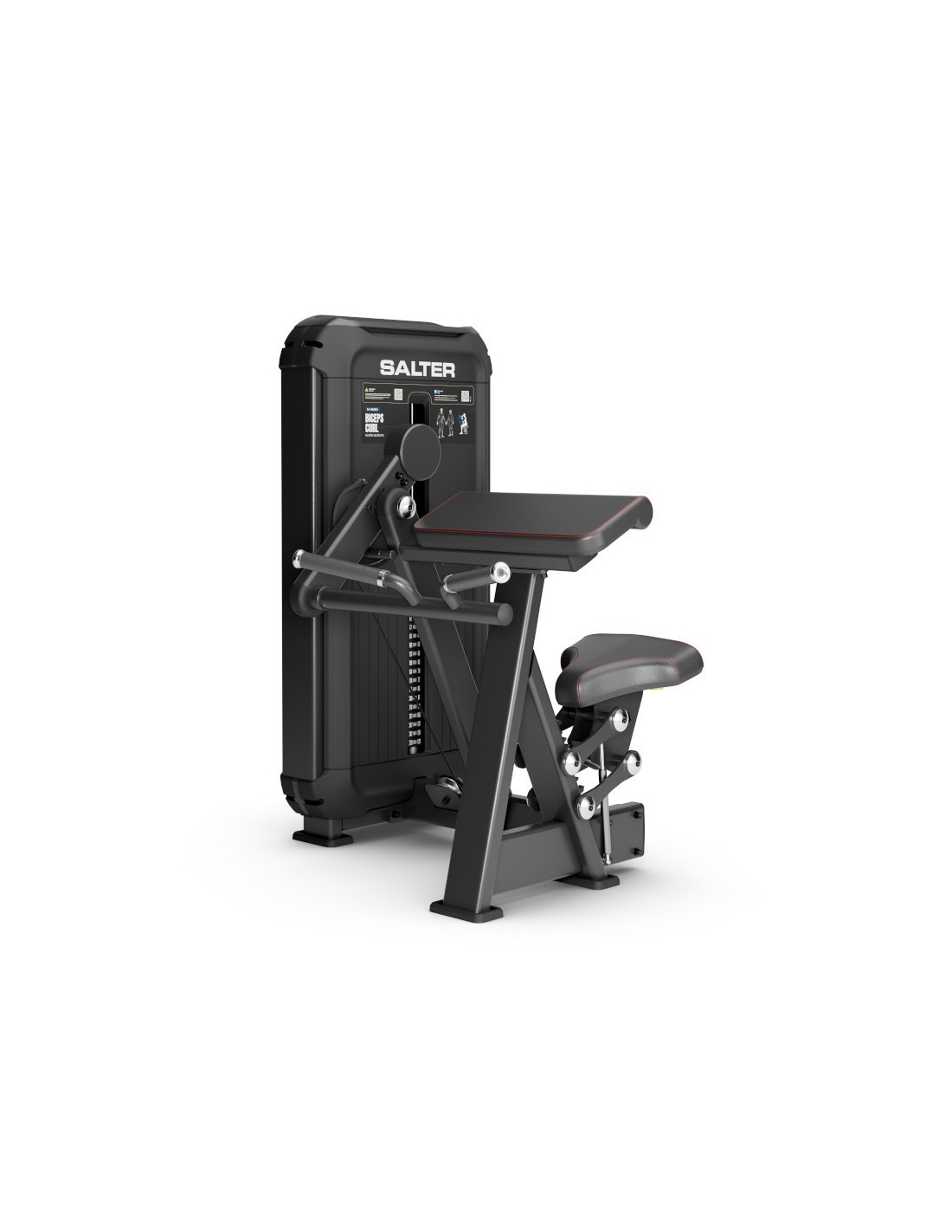 Elle comprend un siège anatomique réglable, un support de bras large et confortable, des guides de plaques en acier inoxydable et des plaques avec bagues à faible friction. Le sélecteur de charge avec système magnétique de sécurité et câble de retenue apporte une protection supplémentaire à l’utilisateur.