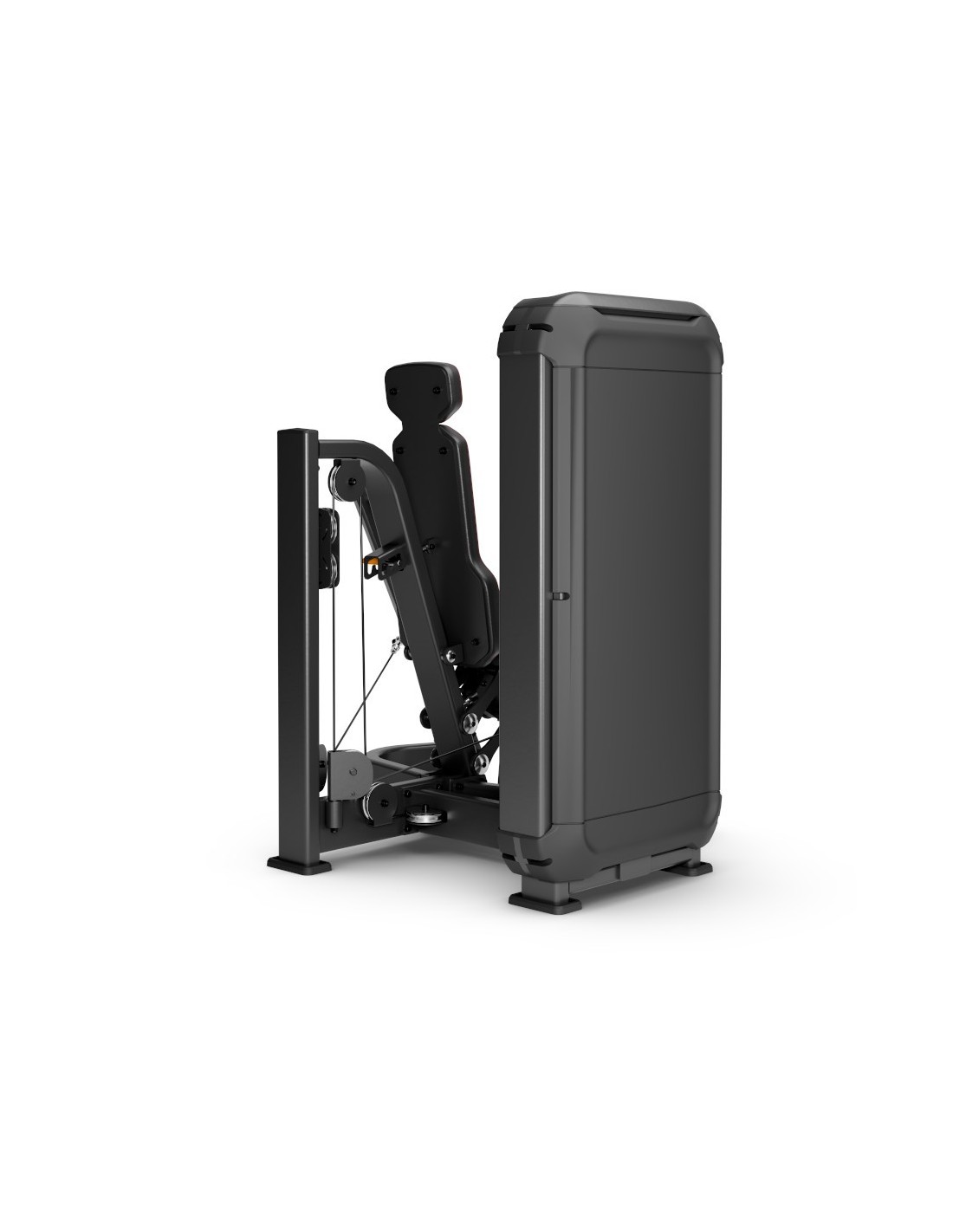 La machine dispose de carénages de protection de la charge, avant et arrière, qui augmentent la sécurité et protègent les composants internes. Le siège et les dossiers, indéformables sous pression, sont fabriqués par injection de polyuréthane (foam), offrant confort et stabilité pendant l’exercice. Le siège anatomique réglable permet une adaptation optimale à tous les profils d’utilisateurs.