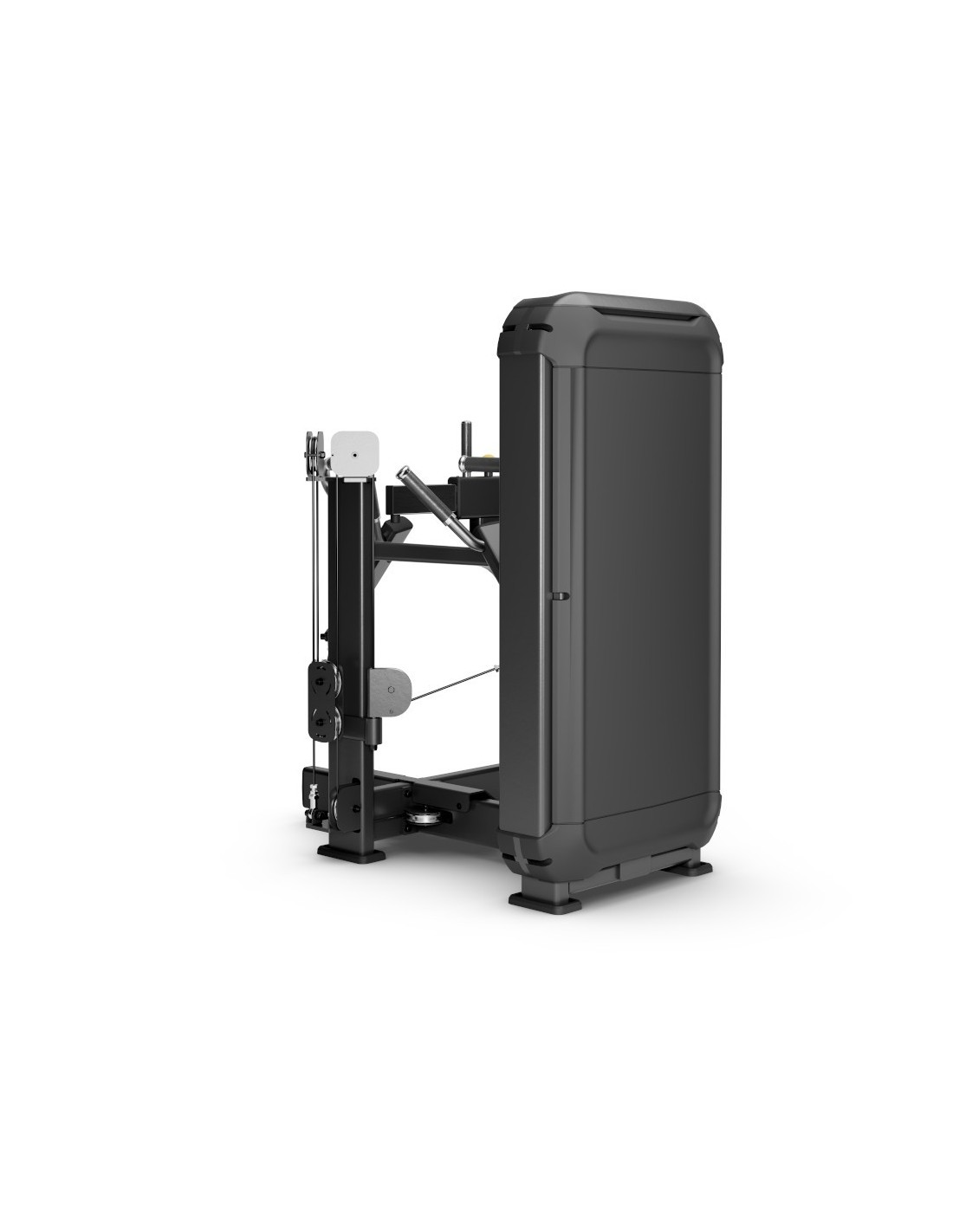 La machine dispose de carénages de protection de la charge, avant et arrière, qui augmentent la sécurité et protègent les composants internes. Le siège et l’appui thoracique, indéformables sous pression, sont fabriqués par injection de polyuréthane (foam). Tous deux sont anatomiques et réglables, permettant une adaptation ergonomique optimale à tous les profils d’utilisateurs.