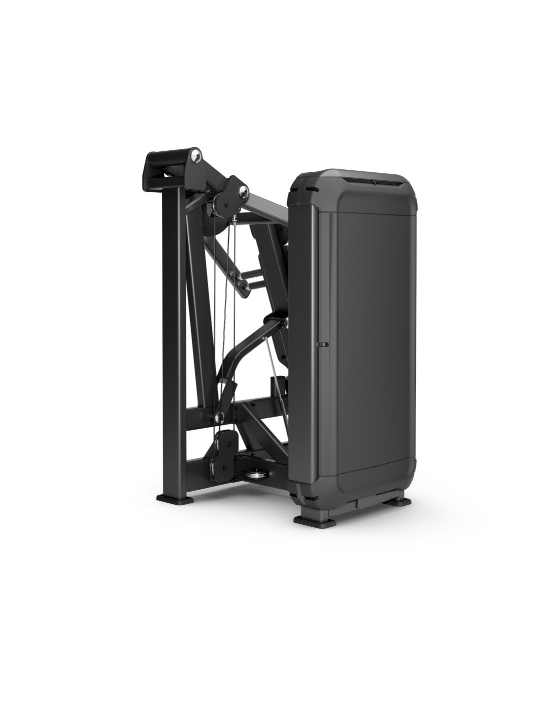Le mouvement divergent du système de poussée offre une trajectoire naturelle et biomécaniquement correcte aussi bien pour le press de poitrine que pour le travail des épaules. Il intègre des guides de plaques en acier inoxydable, des plaques avec bagues à faible friction et un sélecteur de charge avec système magnétique de sécurité et câble de fixation, garantissant une sécurité maximale pendant l’entraînement.