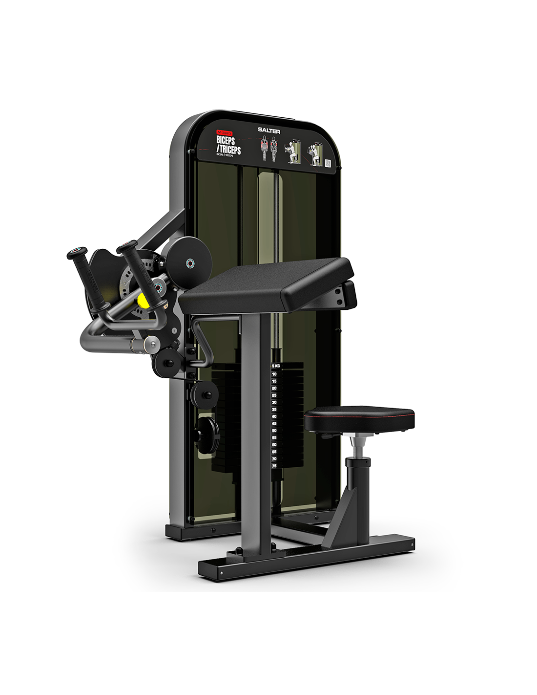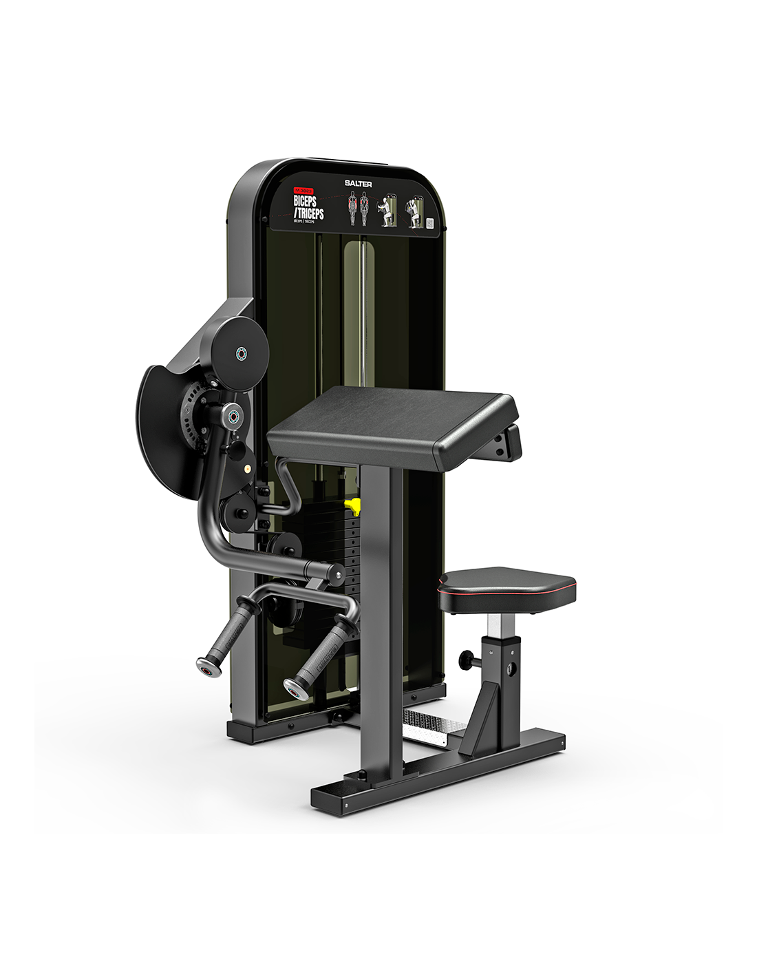 La M-3023 est une machine professionnelle à double fonction, idéale pour l’entraînement isolé des biceps et triceps grâce à son système de plaques guidées et son goniomètre en acier inoxydable permettant d’ajuster l’angle de départ.