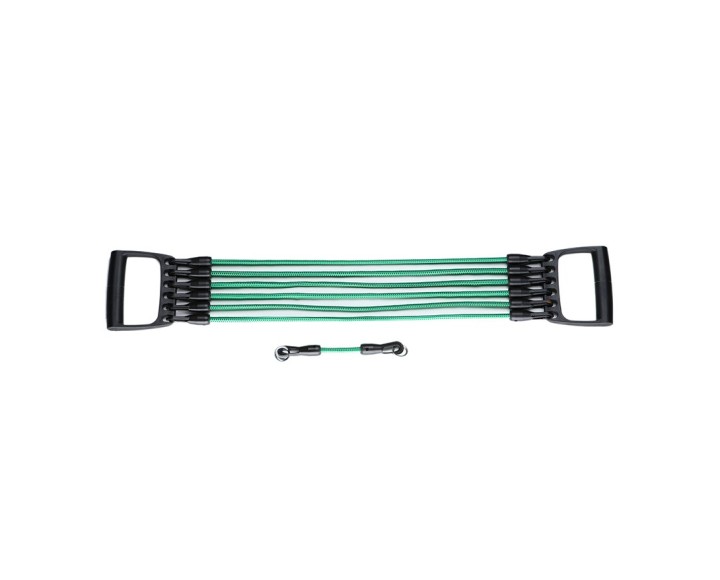 Le expandeur poulie est très simple, mais est un appareil de haut niveau de performance. Le montage est simple et peut varier l'intensité du travail en ajoutant et / ou de retirer les cbles. La force entre 6,5 et 42 kg. Ce modèle intègre un cble-mousqueton qui permet des exercices de poulie. Longueur: 85 cm.