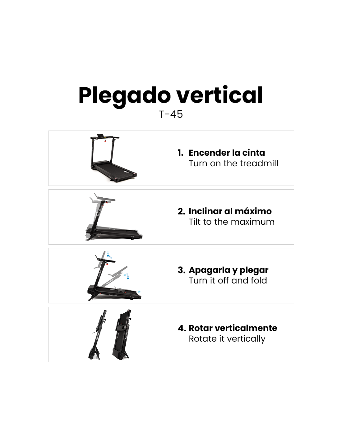 Conçu pour votre confort et sécurité, il dispose d’une clé de sécurité, support pour mobile, double porte-bouteilles, roulettes de transport et système de pliage compact. La surface de course mesure 130 x 48 cm, supporte jusqu’à 120 kg et s’adapte parfaitement à un usage domestique.
