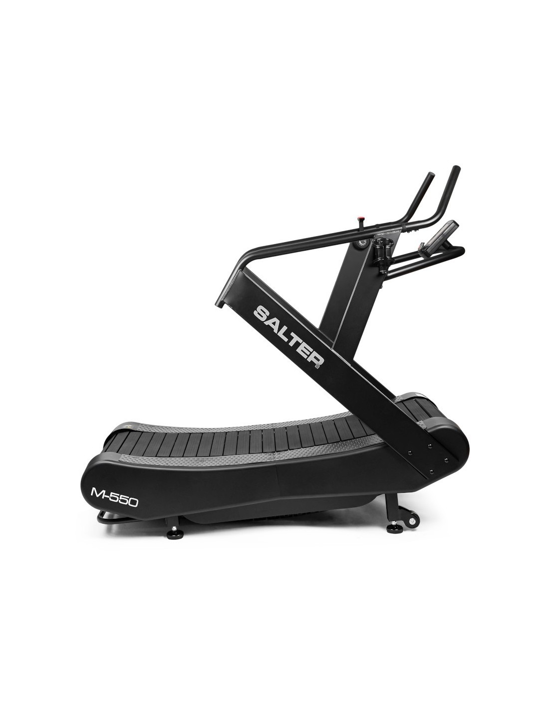Profitez d'un entraînement de haute intensité avec le tapis roulant M-550. Sa structure renforcée offre une grande résistance et durabilité. La surface de course incurvée permet un mouvement plus naturel et plus efficace que la surface de course plate. De plus, cela peut aider à réduire le stress sur les articulations et à améliorer la posture. Sa propulsion est sans moteur ; C'est l'utilisateur lui-même qui propulse le tapis de course avec son mouvement. Augmentez l'intensité de votre entraînement avec le frein manuel à 4 intensités. Le marqueur inclus vous permettra de vous entraîner par objectifs ou par intervalles.