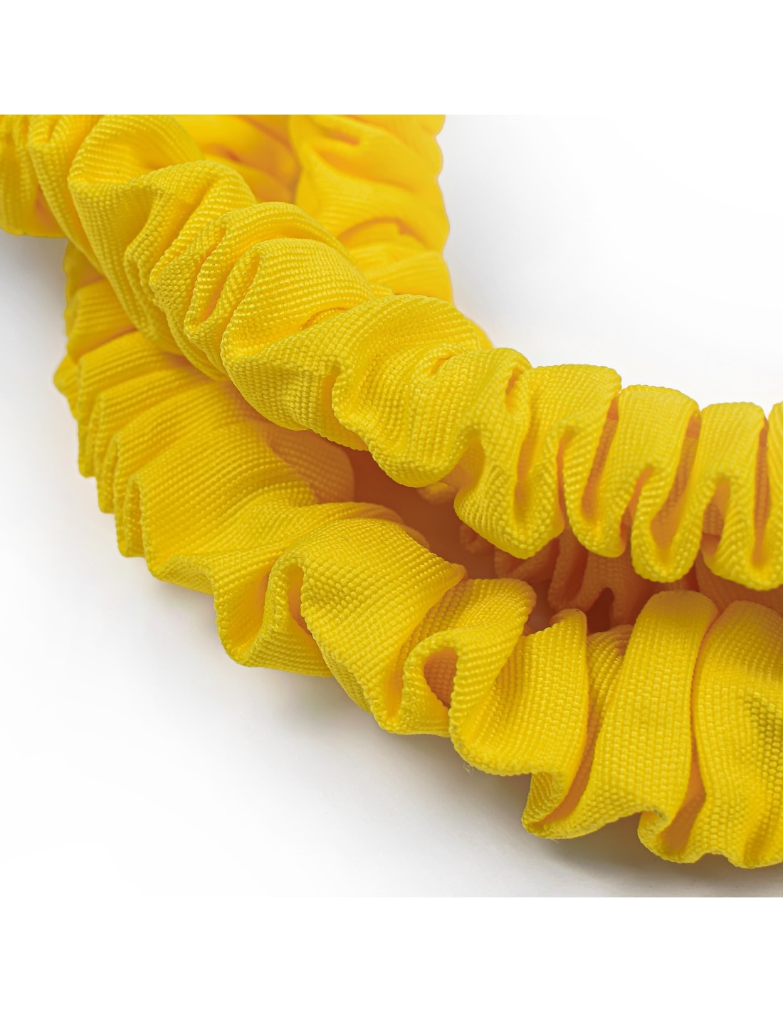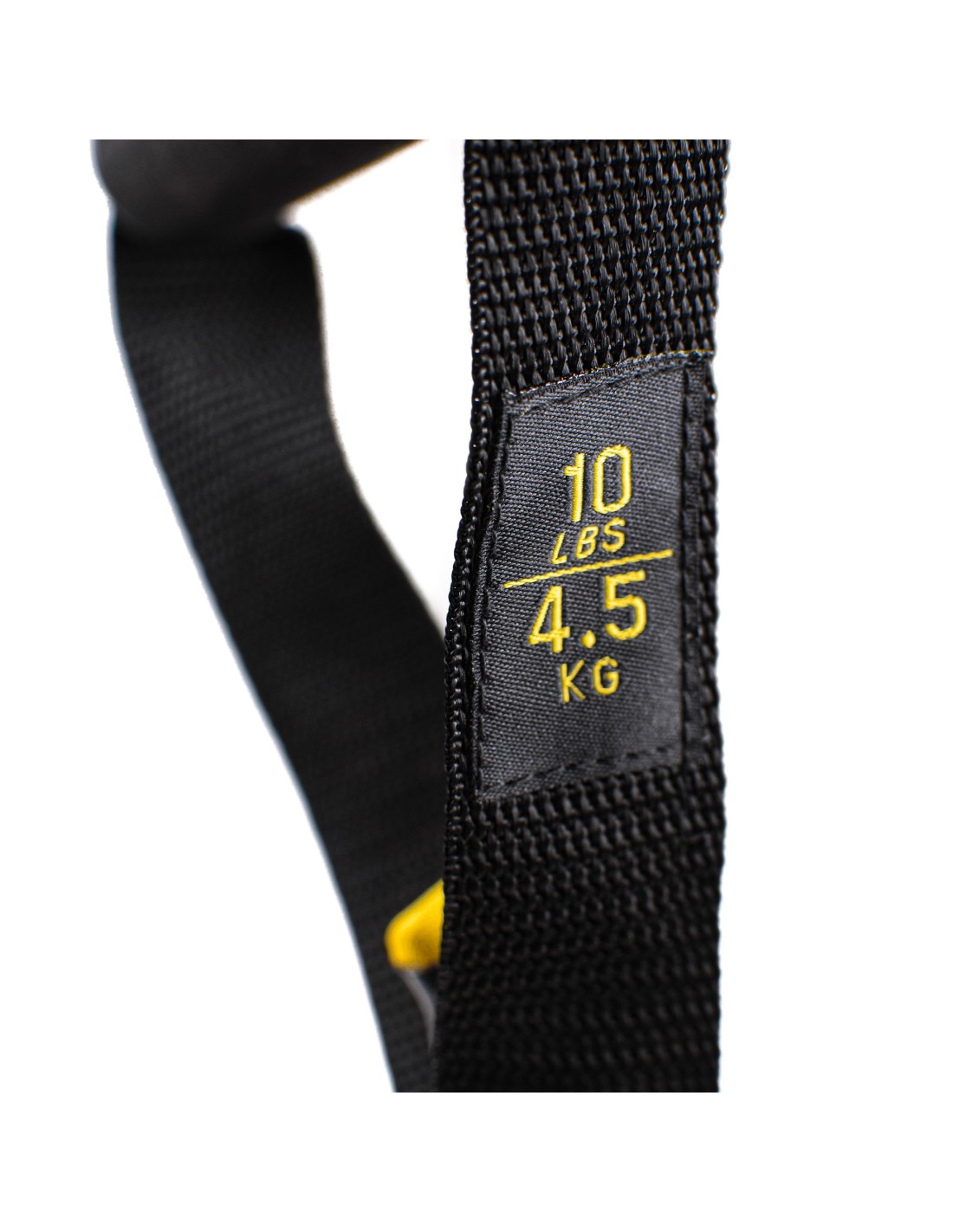 Made of latex threads covered in a protective fabric sleeve, the band is durable and secure for repeated use. It features two padded non-slip rubber handles for a firm and comfortable grip during workouts.