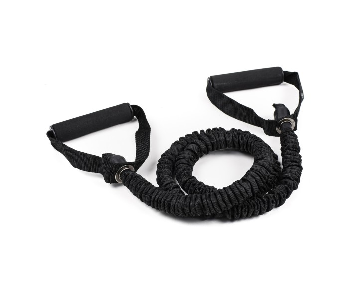 Made with latex threads covered in a protective fabric layer, it ensures enhanced durability and comfort during intense sessions. It features two padded, non-slip rubber handles for a firm and secure grip at all times.