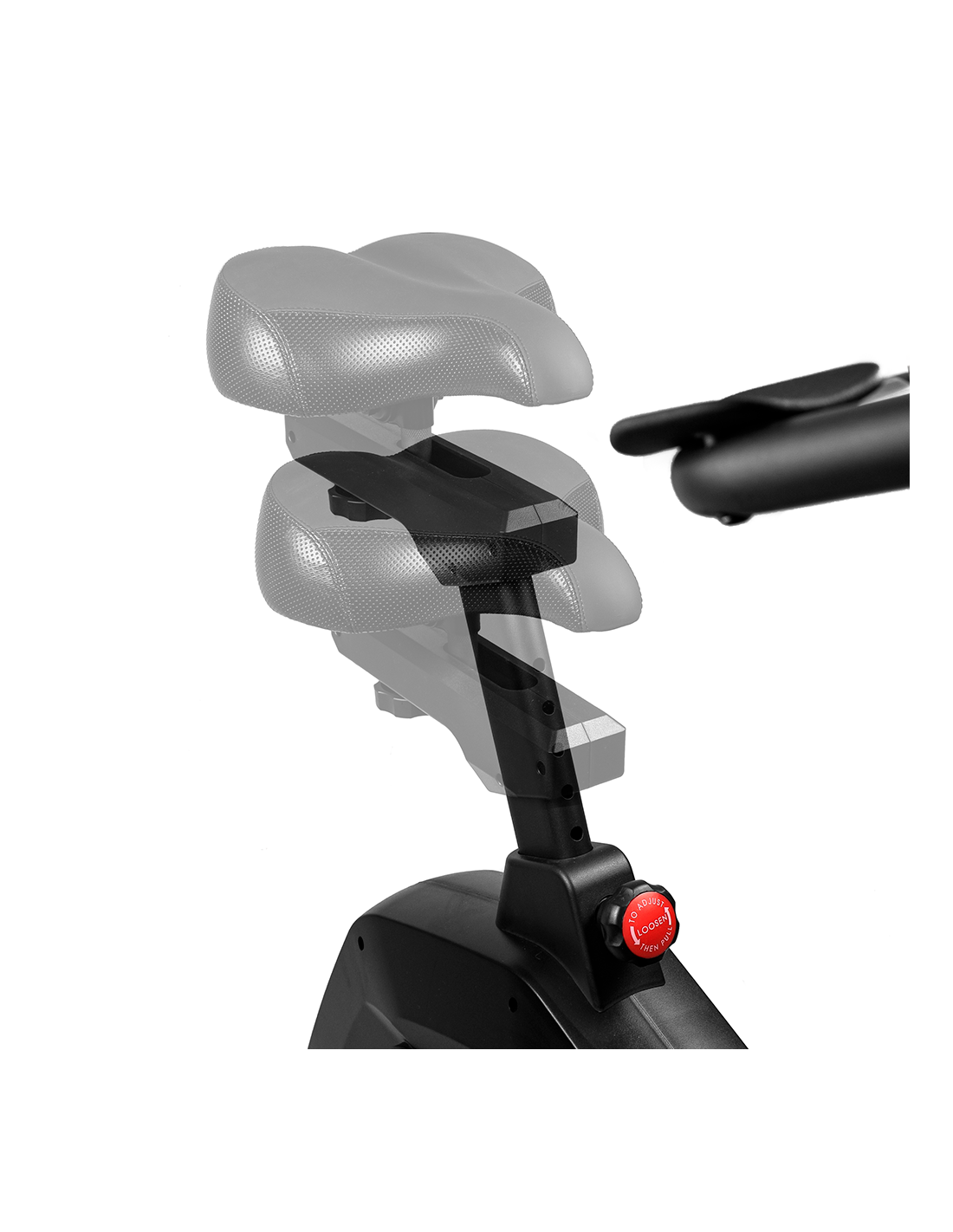 Adjustable handlebar and wide, comfortable seat, adjustable vertically and horizontally.