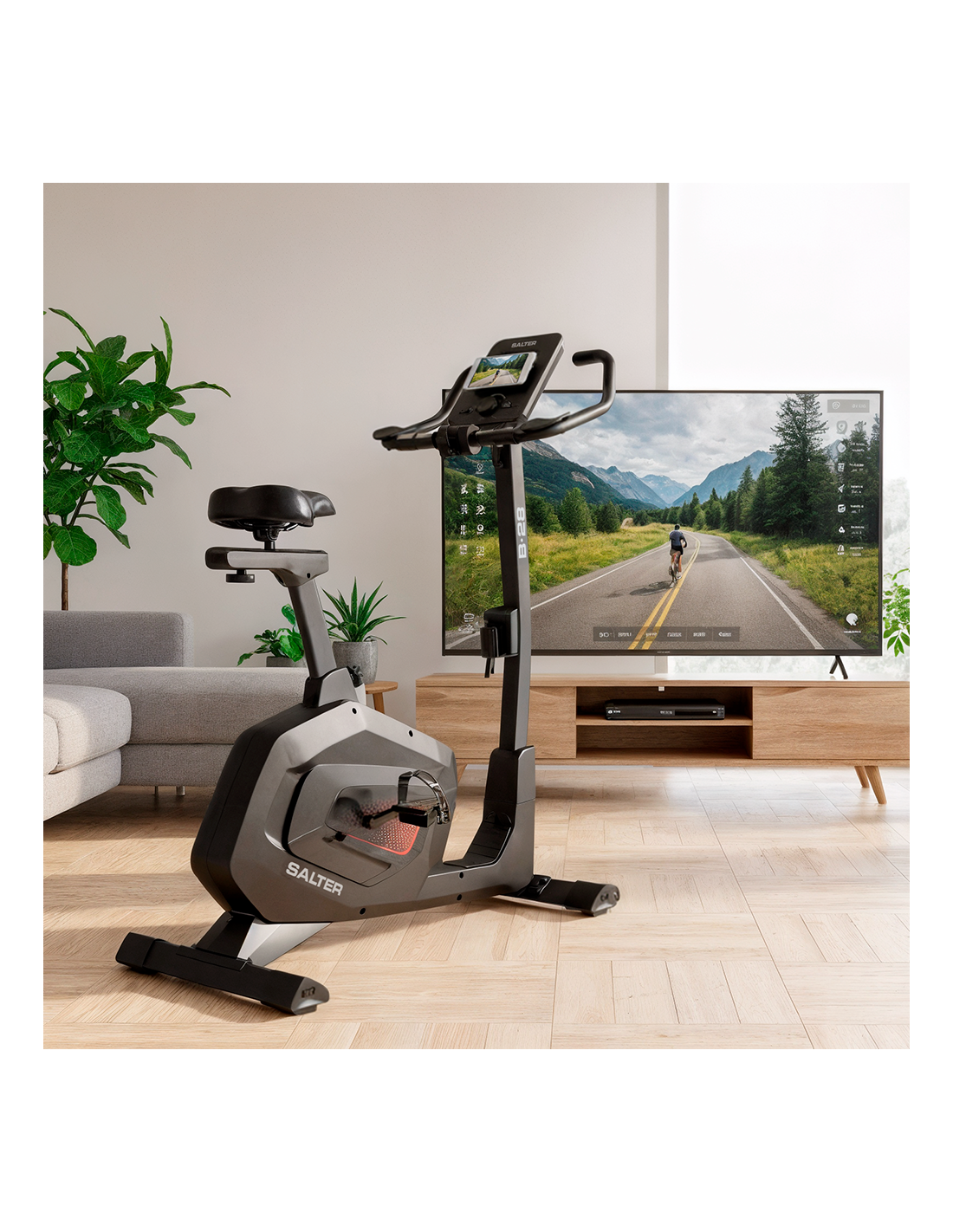 Smart Training technology with Kinomap connectivity: automatically adjusts resistance according to the programme, lets you compete online and explore virtual landscapes.