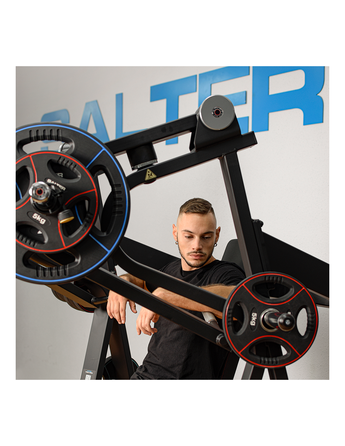 Boost chest strength with a robust, smooth, plate-loaded lever machine built for intensive use in professional environments. The M-1540 combines ergonomics, safety and premium finishes to deliver a powerful, natural press day after day.