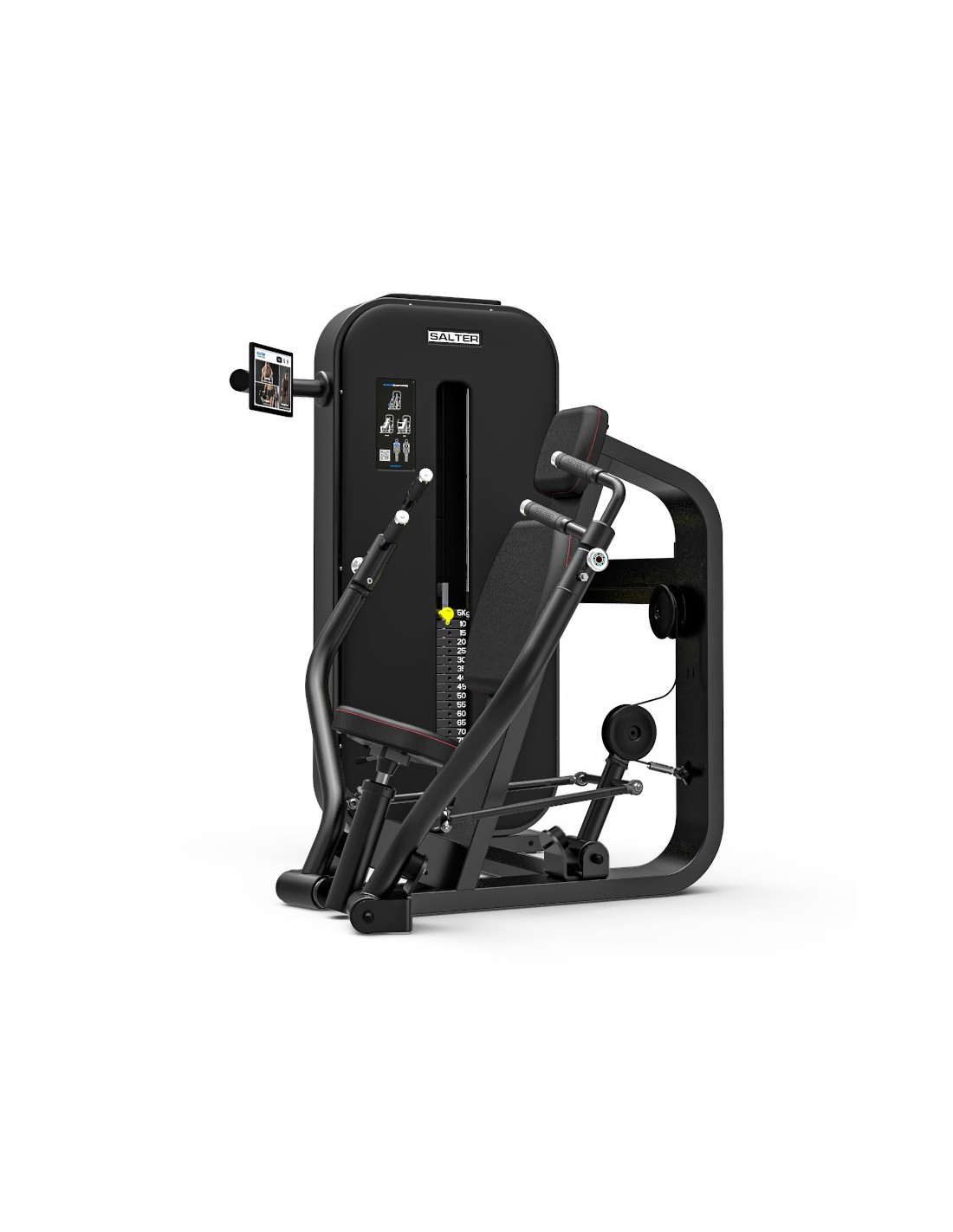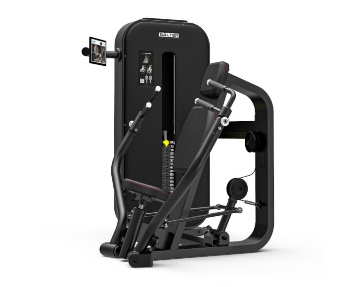 The M-6040 is a professional horizontal chest press designed to target the pectoral muscles with a convergent motion. It is part of SALTER’s ESSENCE CONNECT line, offering full integration with the SALTER Ecosystem, including FIT RECORD®, S CLOUD®, TRAININGYM and STRAVA.