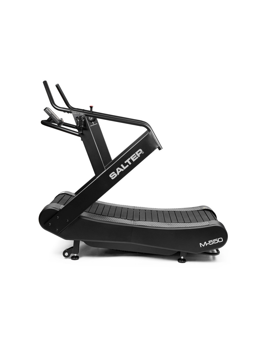Enjoy a high intensity workout with the M-550 treadmill. Its reinforced structure offers great resistance and durability. The curved running surface allows for more natural and efficient movement than the flat running surface. Additionally, it can help reduce stress on joints and improve posture. Its propulsion is without a motor; It is the user himself who propels the treadmill with his movement. Increase the intensity of your workout with the 4-intensity manual brake. The included console will allow you to train by goals or intervals.