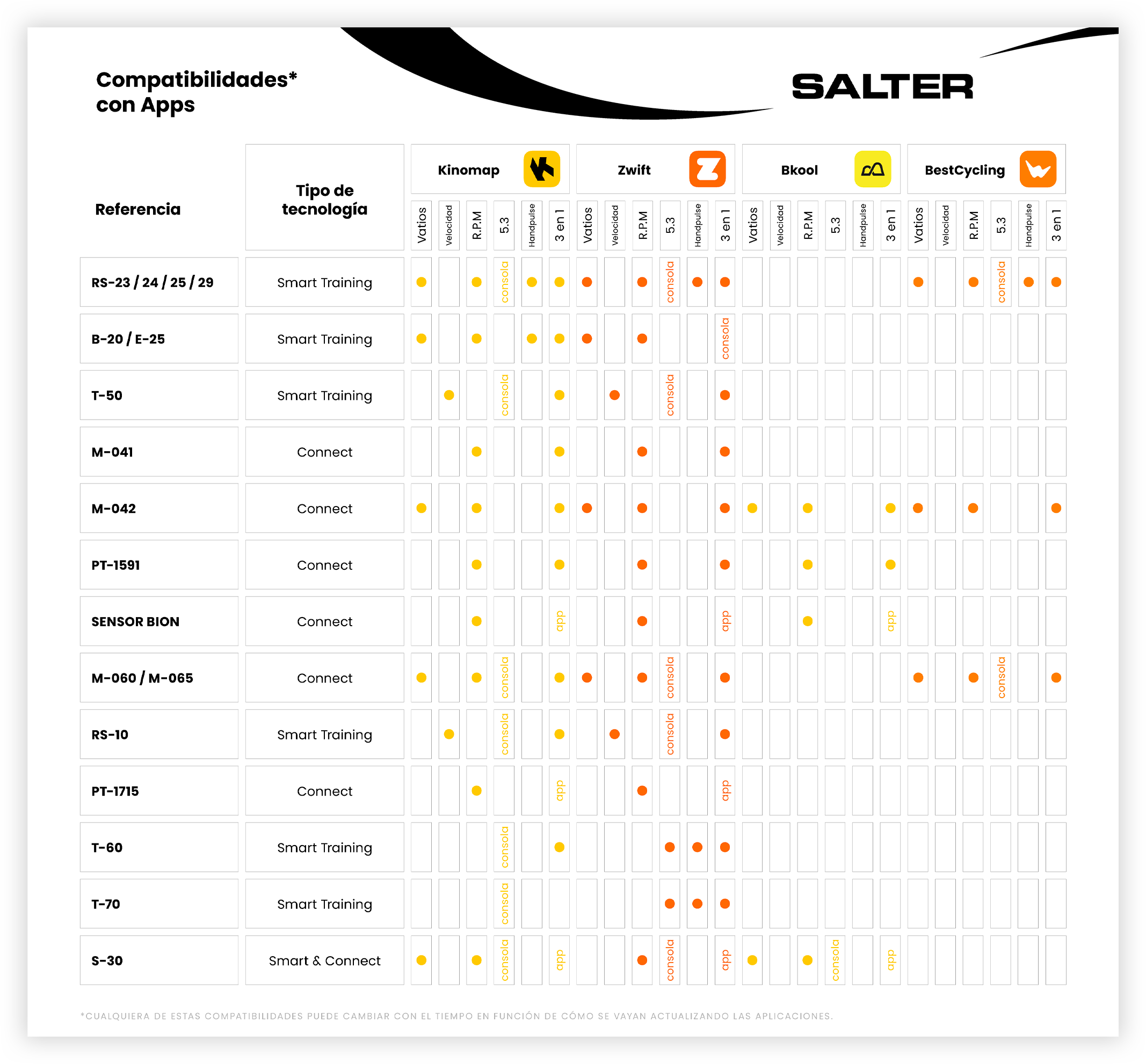 Aquí tienes una tabla de compatibilidades