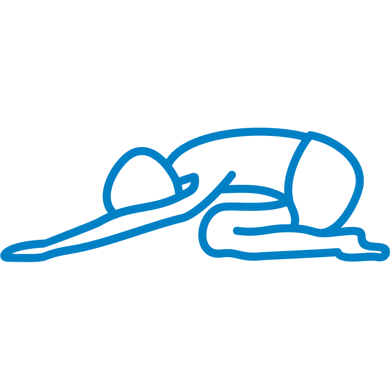 • Desde la posición de cuatro puntos, siéntate sobre tus talones y estira los brazos hacia adelante.