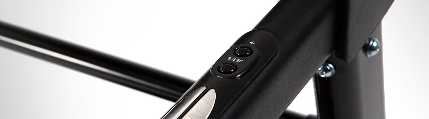 Gracias a su conectividad SMART TRAINING, puedes enlazarla con ZWIFT y KINOMAP, permitiendo que la inclinación se ajuste automáticamente al perfil del entrenamiento seleccionado. La pantalla LED integrada muestra en tiempo real velocidad, distancia, inclinación, calorías, pulso, tiempo y Body Fat, y permite un control fácil desde las teclas de acceso rápido en el manillar.