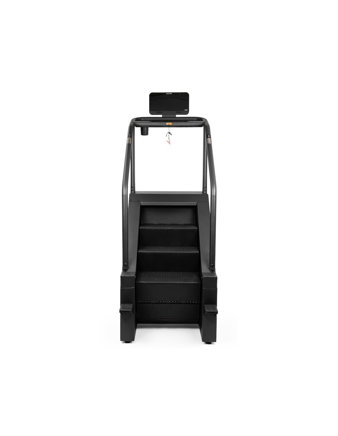 El simulador de escaleras imita el movimiento natural de subir peldaños. Permite trabajar los músculos de los glúteos, pero también los muslos y los músculos abdominales, además de trabajar el sistema cardiovascular. Este aparato es muy eficaz para el calentamiento o para quemar grasa.