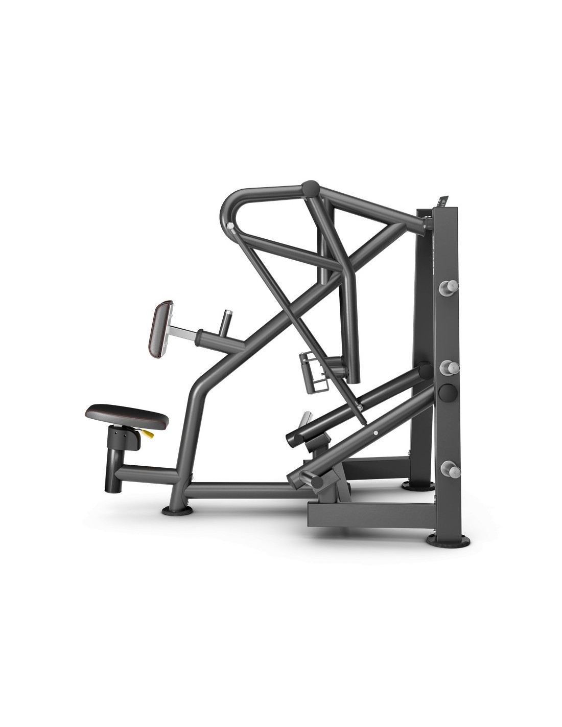 El asiento anatómico ajustable en altura permite adaptar la máquina a la fisionomía de cada usuario en segundos, favoreciendo una alineación y un recorrido de trabajo más eficiente
