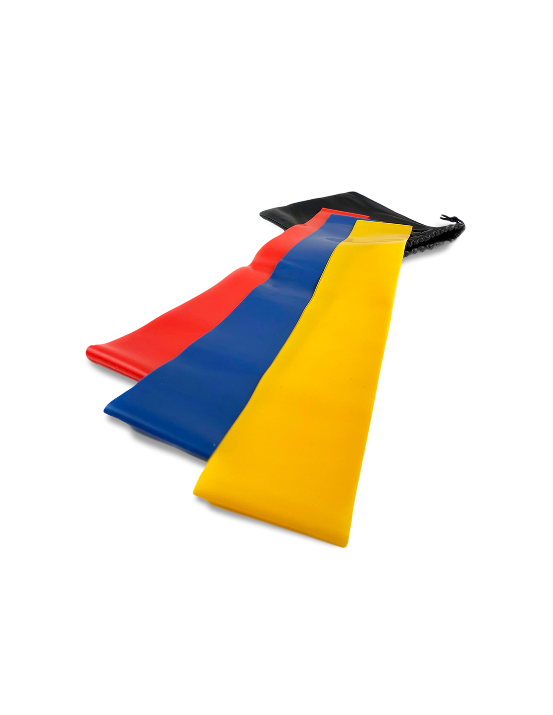 El set incluye una práctica bolsa de rejilla para su almacenamiento y transporte. Gracias a su tamaño compacto y versatilidad, estas bandas son una excelente opción tanto para entrenamientos en casa como para centros profesionales.