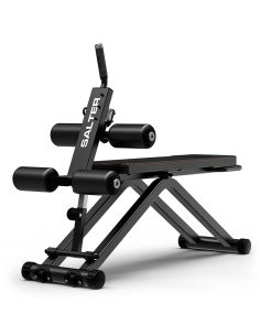 Banco específico para abdominales con inclinación regulable, apoyapiés de poliuretano, agarres antideslizantes y ruedas de transporte. Diseño profesional y máxima estabilidad.
