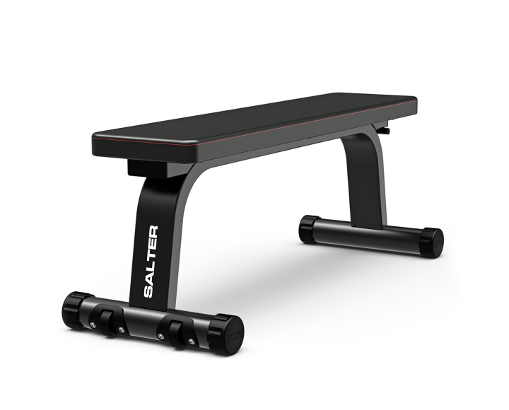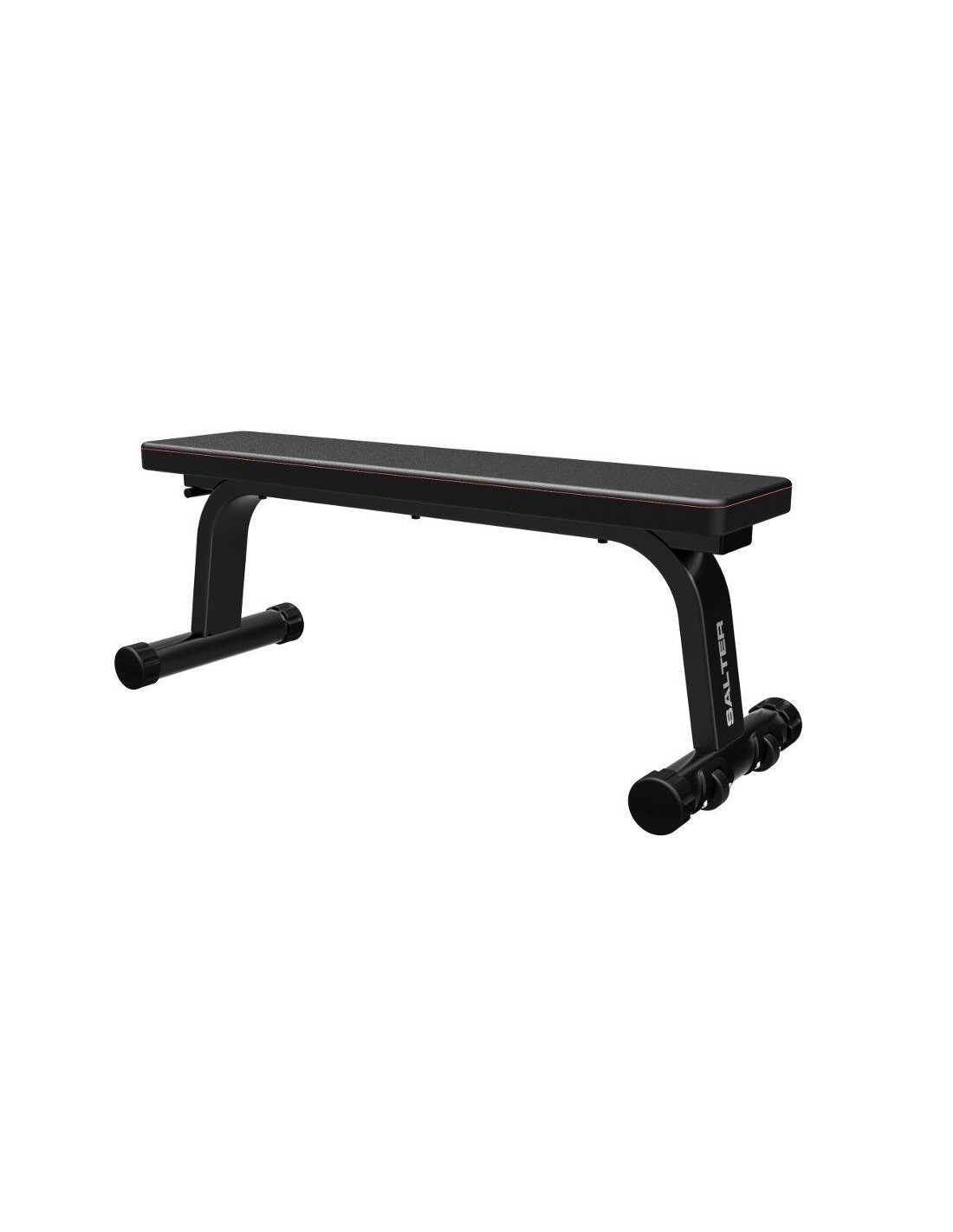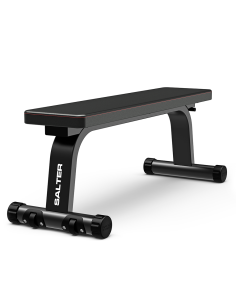 Banco plano compacto y resistente, con ruedas para transporte y diseño minimalista. Ideal para trabajo con mancuernas o como base en entrenamientos funcionales.