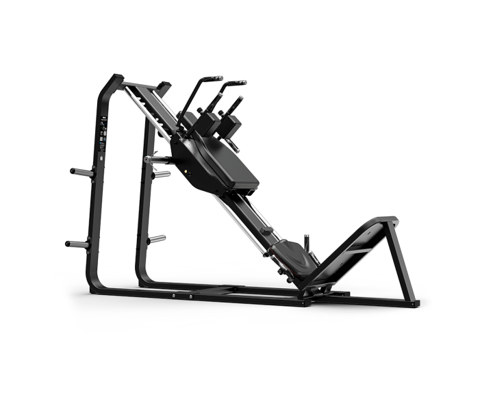La M-1086 es una máquina combinada de prensa de piernas y hack squat (jaca), diseñada para entrenamientos intensivos del tren inferior en entornos profesionales. Su versatilidad permite alternar entre ambos ejercicios sin necesidad de cambiar de equipo, optimizando el espacio y el rendimiento.