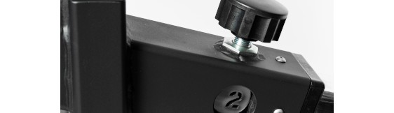 La regulación del ejercicio se adapta fácilmente mediante un goniómetro de acero inoxidable, que permite seleccionar el ángulo de inicio para trabajar el abdomen o la zona lumbar. La máquina incluye doble apoyo para pies y brazo de palanca ajustable en altura, brindando una biomecánica eficaz y personalizada.
