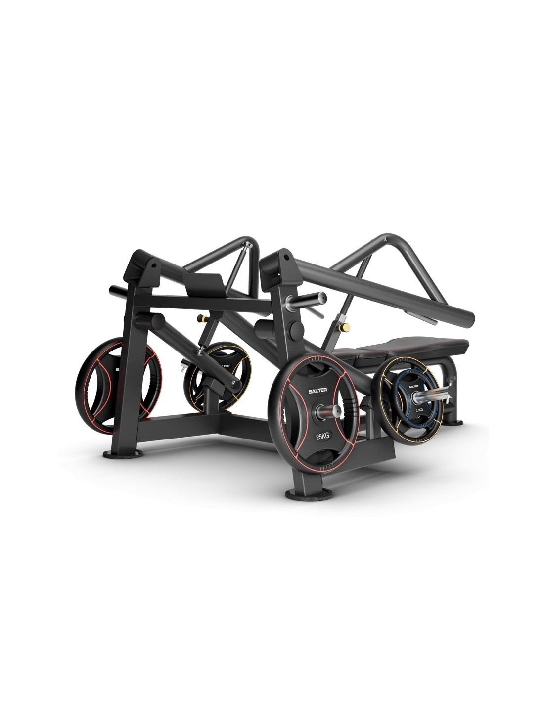 Permet de stocker la charge directement sur la machine, en gardant les disques à portée de main et l’espace d’entraînement ordonné et sécurisé. Facilite des changements de poids rapides entre les séries et évite les déplacements inutiles dans la salle.