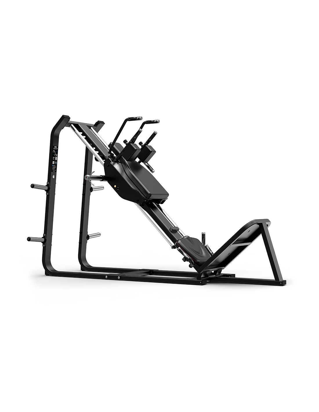 La M-1086 est une machine professionnelle 2-en-1, combinant presse à jambes et hack squat, permettant un entraînement intensif du bas du corps sans changer d'équipement. Une solution idéale pour optimiser l’espace et la performance en salle.