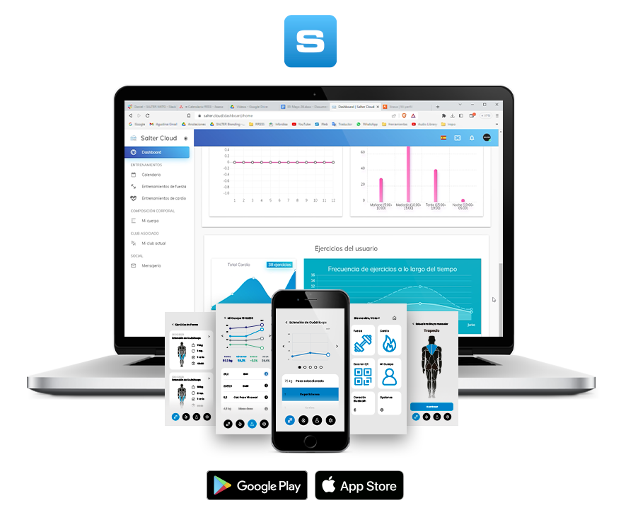Suivez vos séances d'entraînement par groupe musculaire, date, type d'exercice, séries, charge sélectionnée, charge cumulée, temps de repos moyen, puissance moyenne, etc. et surveillez l'évolution de vos principaux paramètres corporels (graisse corporelle, graisse musculaire dans une zone spécifique, périmètres corporels, etc.)
