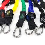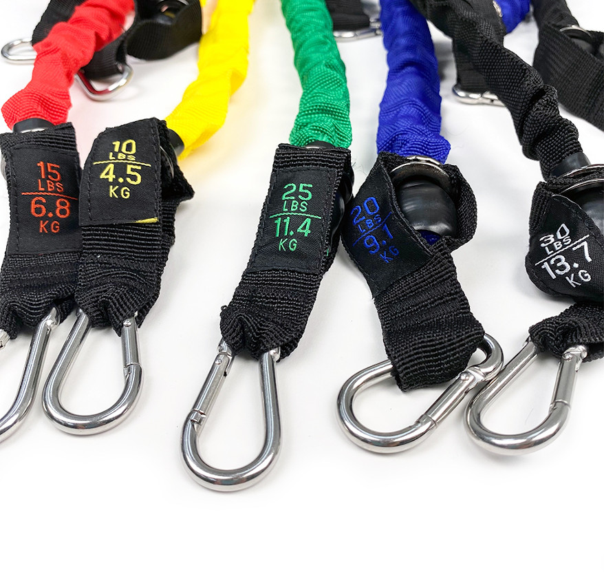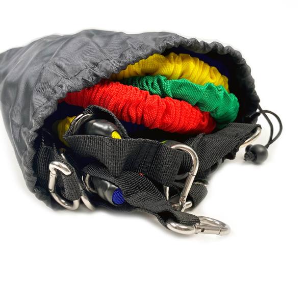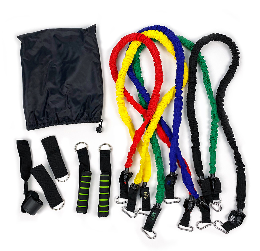 Il comprend cinq tubes de résistance progressive, fabriqués en latex et protégés par un revêtement en tissu durable. Chaque tube offre un niveau de résistance différent (de 4,5 kg à 13,7 kg), permettant de moduler l’intensité ou d’adapter l’exercice à l’utilisateur.