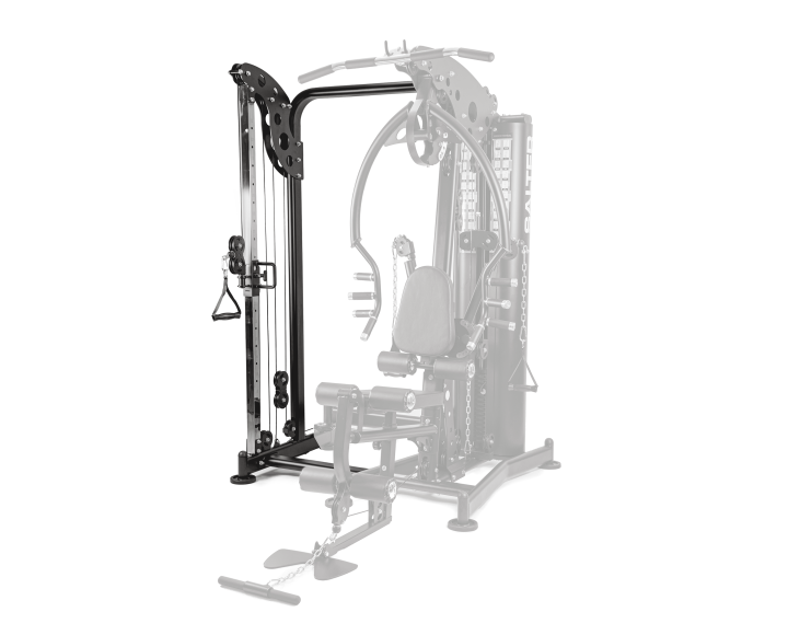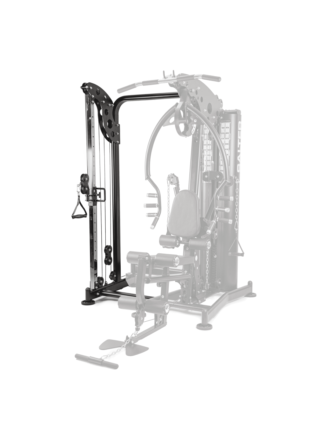 Le SH-02-3 est un accessoire optionnel conçu pour élargir les capacités de la machine multifonction SH-02, en y ajoutant une poulie réglable en hauteur permettant une plus grande variété d’exercices, y compris fonctionnels, de renforcement ou de rééducation.