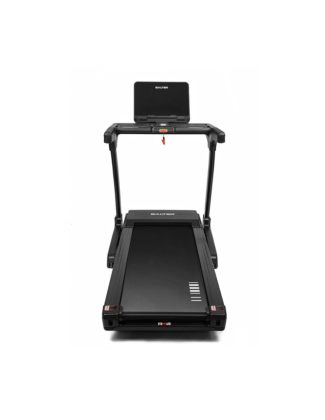 Son système de contrôle central permet de modifier facilement la vitesse et l’inclinaison depuis la console ou les poignées latérales, grâce aux touches d’accès rapide intégrées. Le système de mesure du pouls sans fil (5 kHz, compatible avec ceinture, non incluse) assure un contrôle efficace de la fréquence cardiaque, même lors de séances intensives.