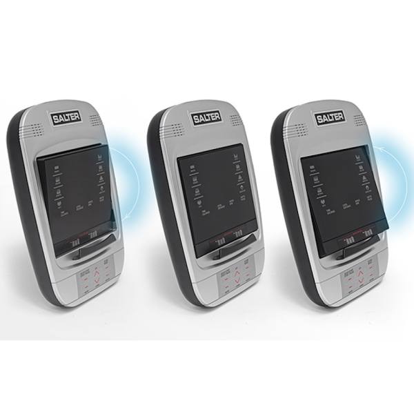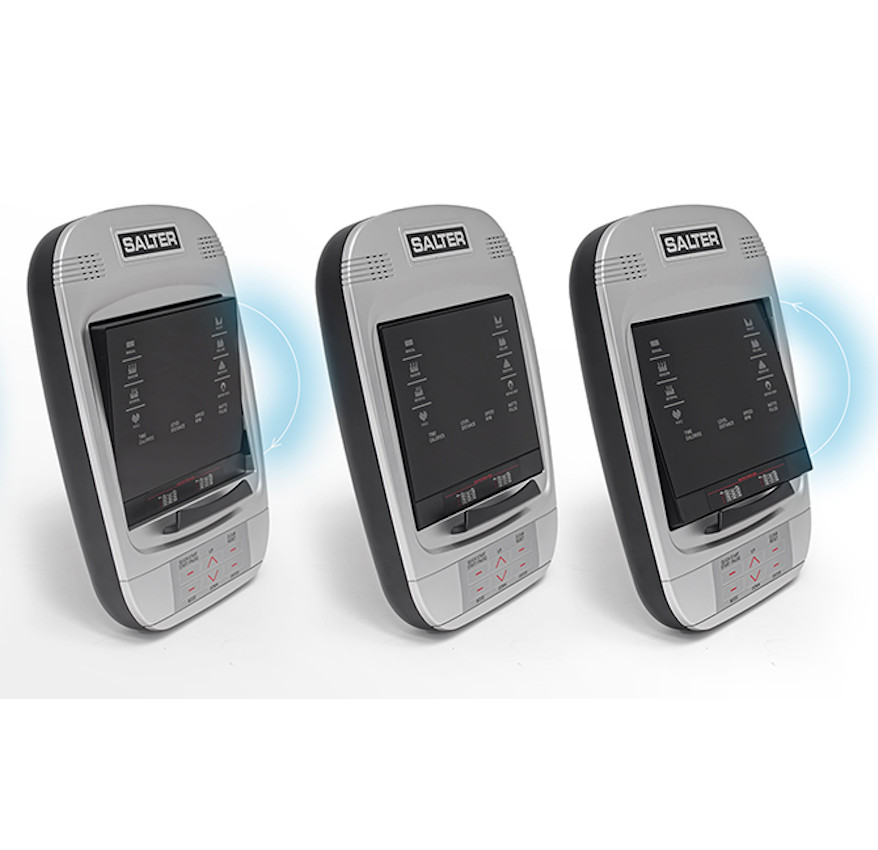 - Panel LED amplio y orientable con indicadores de: Tiempo, Distancia, Velocidad, RPM, Nivel, Calorías, Pulso y Vatios.